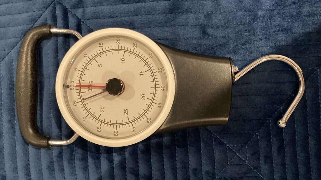 I use this analog scale. It doesn’t require batteries which is one less worry.